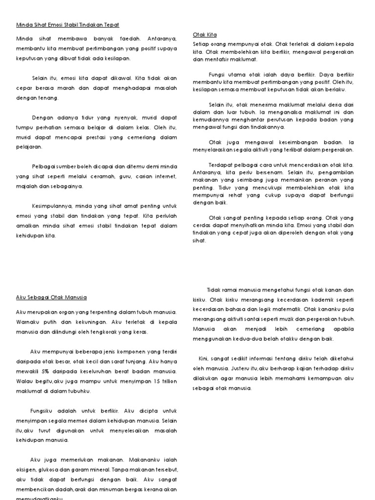 Contoh Ulasan Minda Dan Emosi Yang Sihat